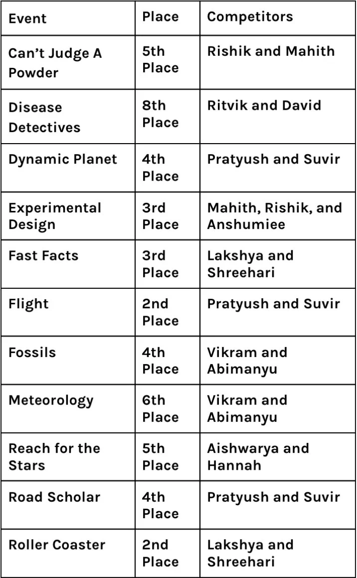 Now the results of Larson and our school got…9th place out of 48 schools!! Other middle schools in Troy, such as Baker won 13th place and Boulan Park won 4th place! The high schools in Troy who competed in Division C - high school competition - such as Athens got 4th place and Troy High got 6th place! These are mind-blowing and awesome results!